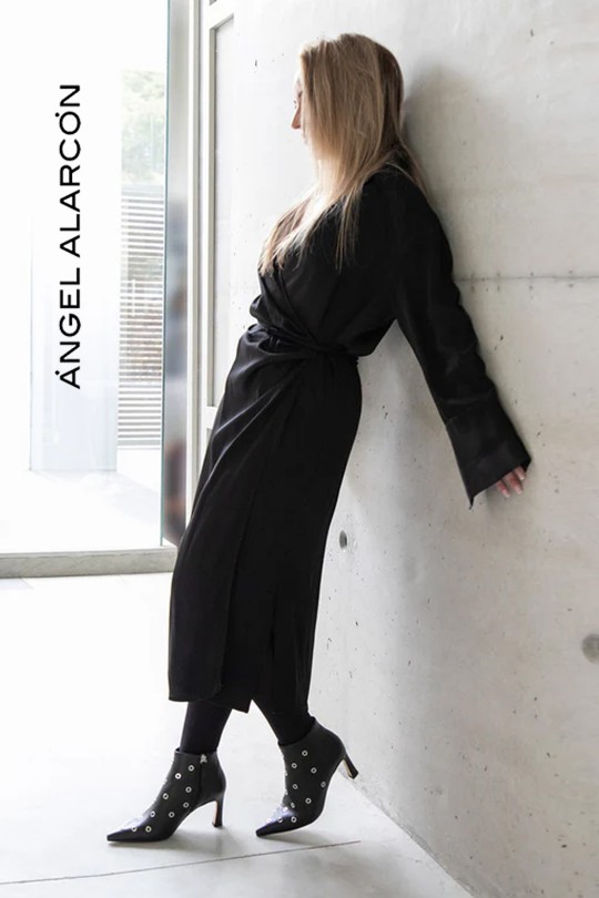 Angel Alarcon μονόχρωμο δερμάτινο λουστρίνι μποτάκι,με χοντρό τετράγωνο τακούνι(ύψος 7 εκ),με φερμουάρ στο πίσω μέρος και ραφή στο μπροστινό μέρος που..